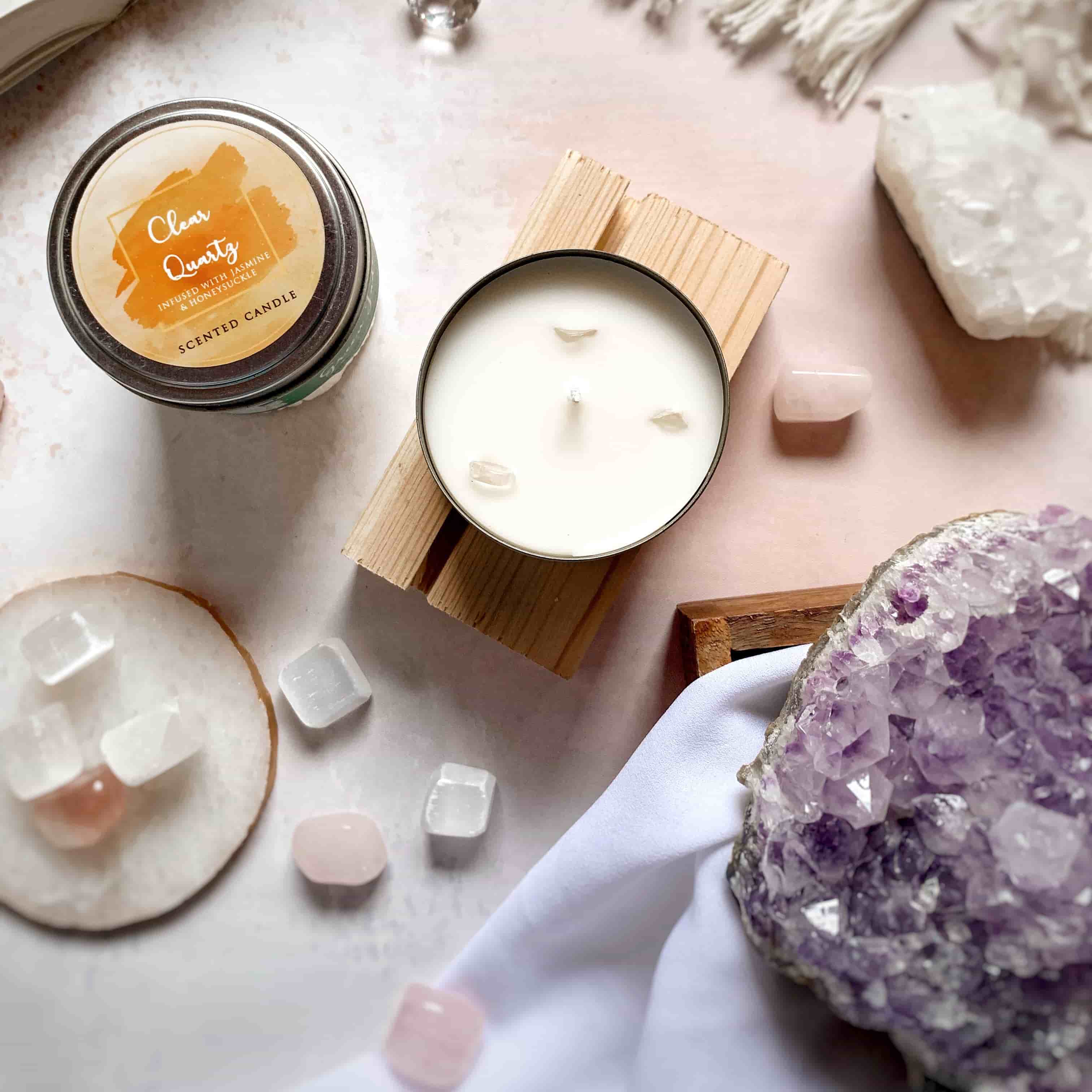 Clear Quartz Healing Stone Scented Candle in Glass Jar (200g)