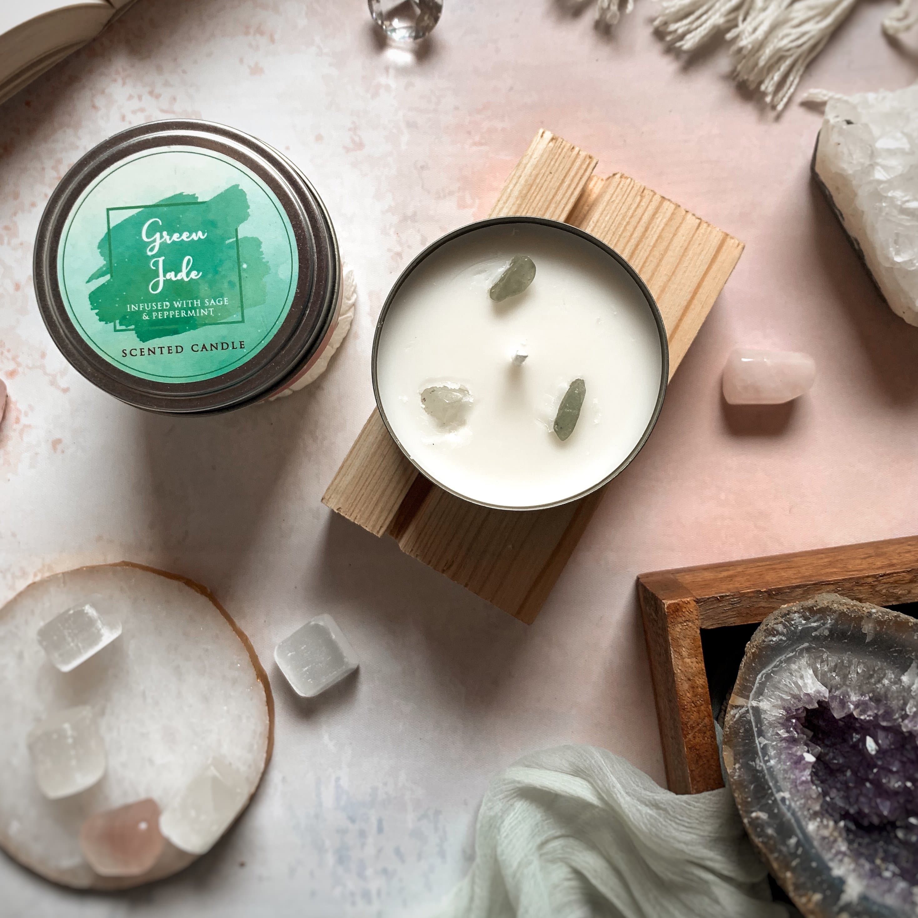 Green Jade Healing Stone Scented Candle in Tin Jar (80g)