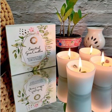 Healing Stone Essential Gem Candles in Votive Jars (60g Each, Set of 4, Hardbound Gift Box)