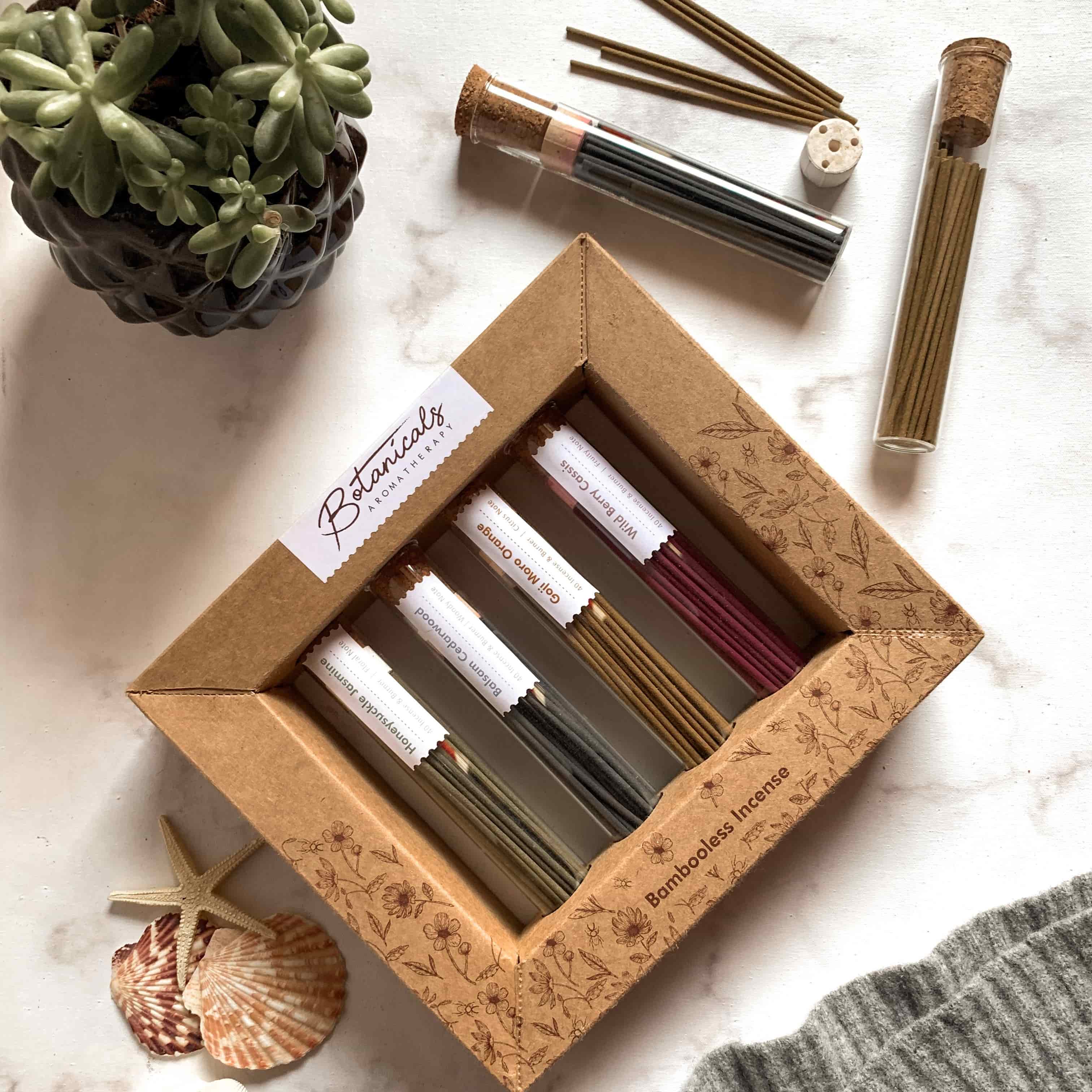 Balsam Cedarwood Bambooless Incense with Ceramic Burner Gift Set (40g, Set of 4)