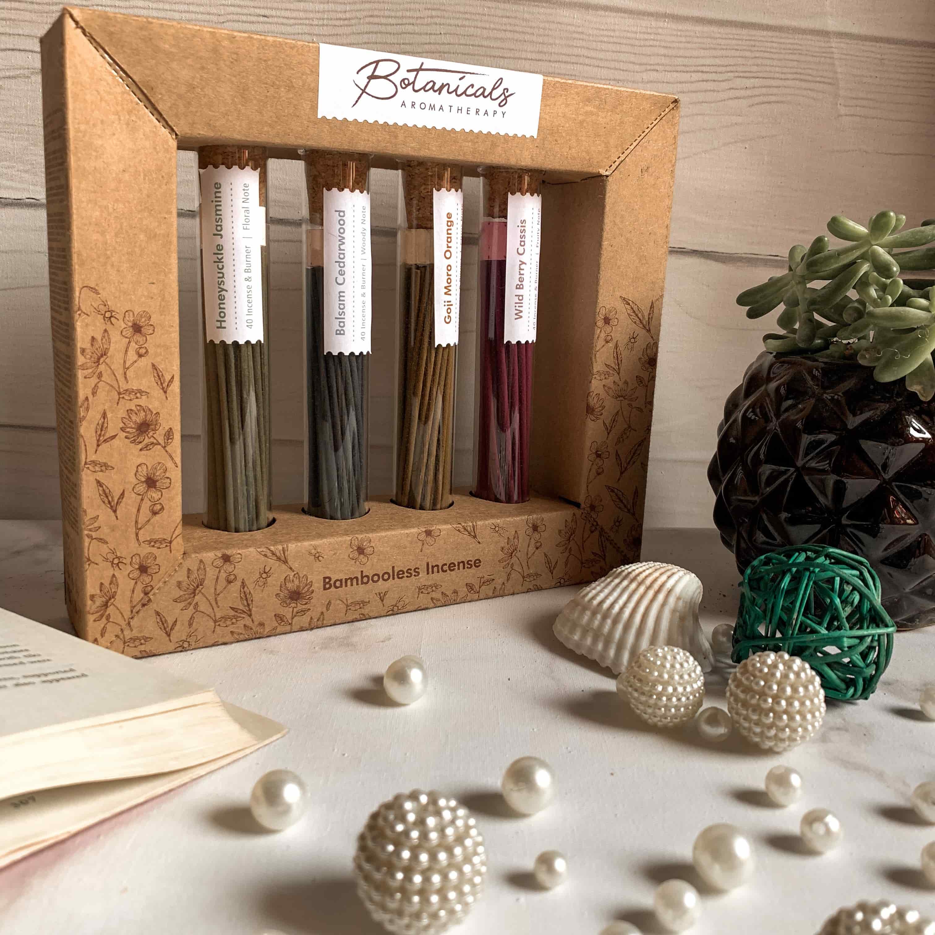 Wild Berry Cassis Bambooless Incense with Ceramic Burner Gift Set (40g, Set of 4)